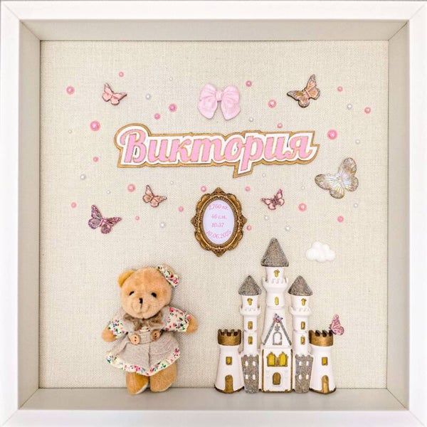 Gepersonaliseerde baby lijst met handgemaakt ontwerp